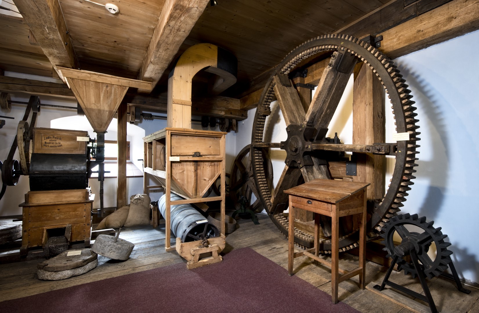 V druhém patře jsou zastoupeny především živnosti zabývající se výrobou potravin, ale je zde také světnice, jak se žilo před více než 100 lety. Dominantní prostor zaujímá mlynářství včetně části vodního kola, pekařství, cukrář, řezník, výroba sýra, másla, sodové vody a včelař. V tomto patře láká ke svezení speciální dřevěný tobogán na spouštění pytlů do nižšího patra.